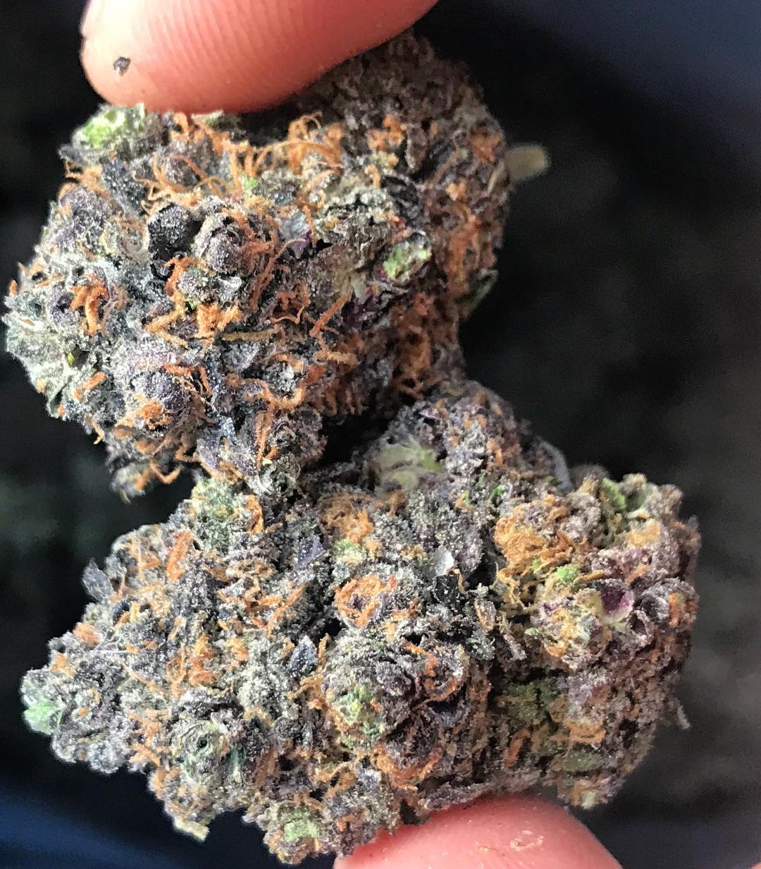 Grinding up or breaking apart the flowers gives off a more herbal, earthy profile. Though it’s thick and lung-expanding,